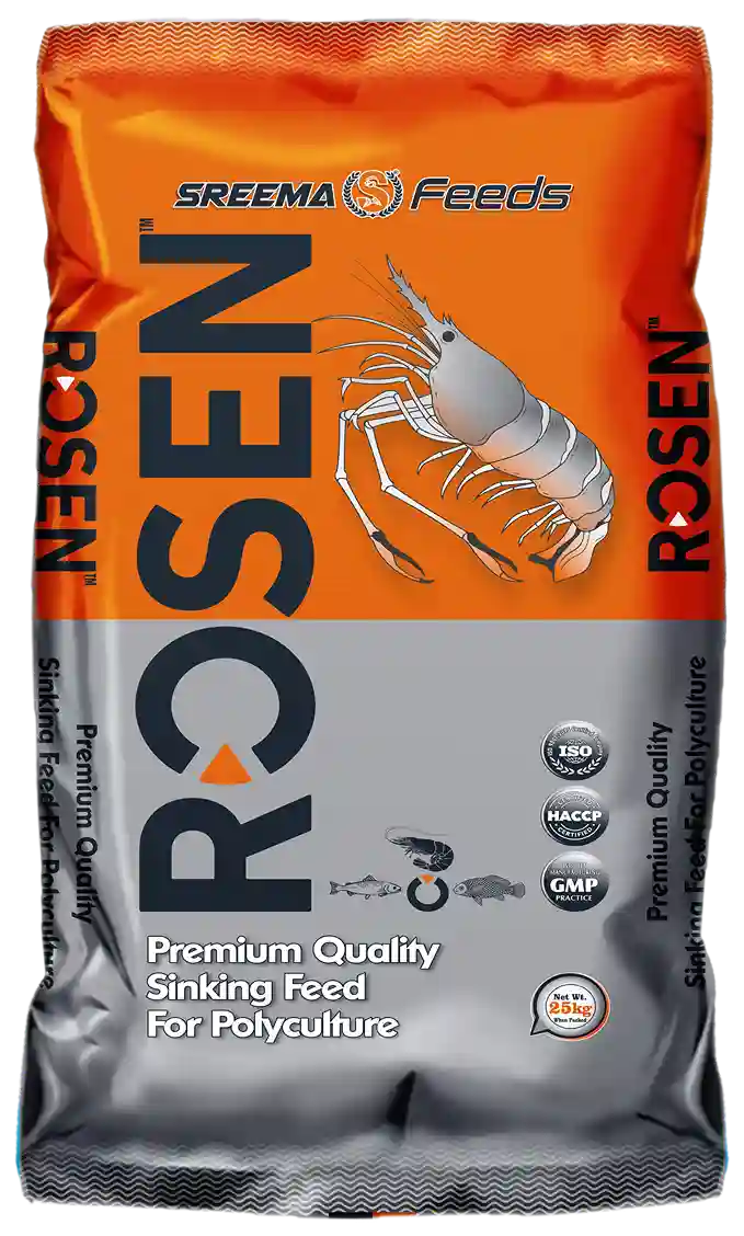 Feeds: Fish Feed (Floating, Sinking, High Protein), Shrimp Feed (Growth, Sinking), Carp Growth Feed.