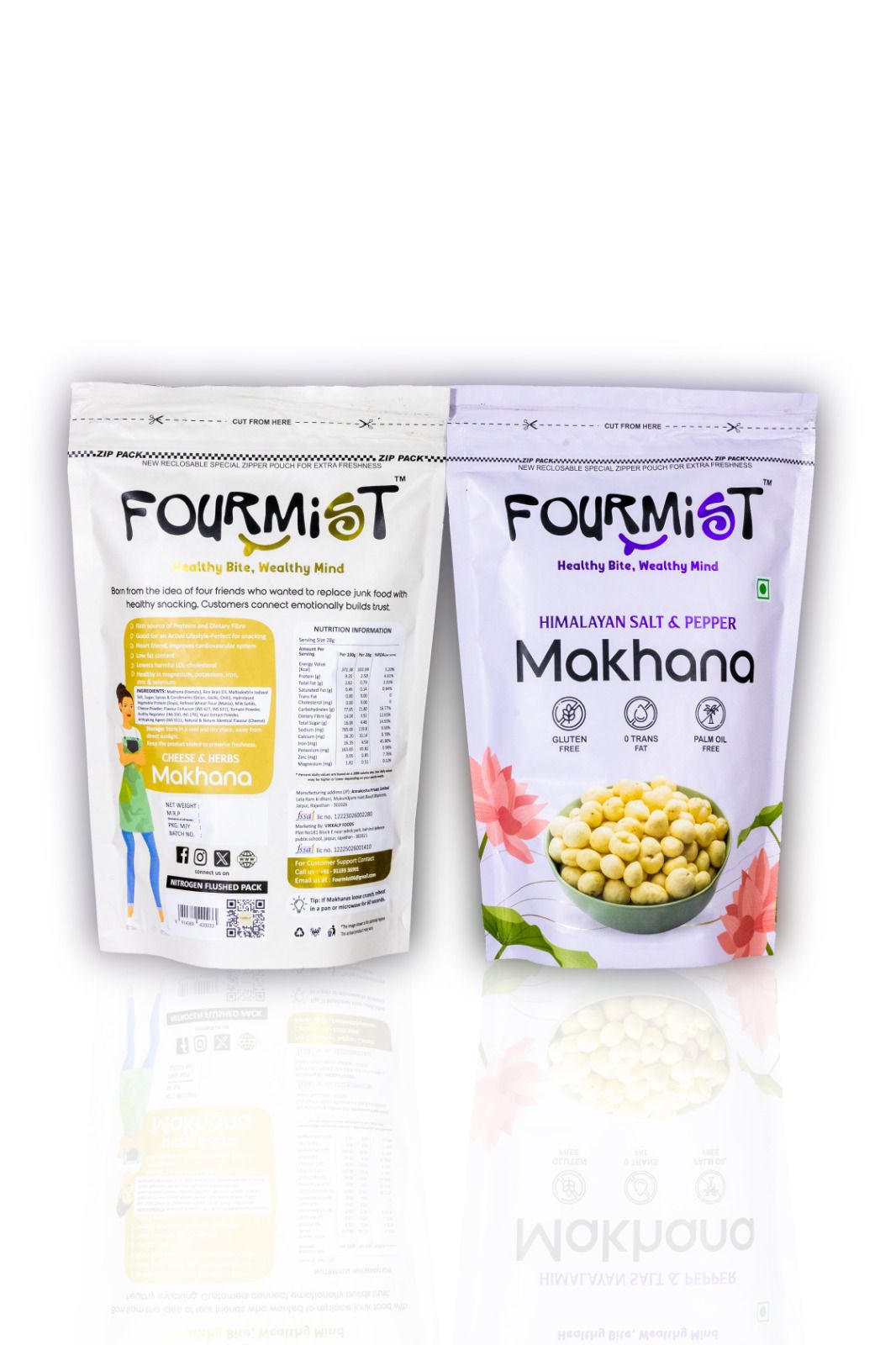 The product portfolio of FOURMIST currently includes 9 SKUs of flavoured makhana, carefully crafted to suit diverse taste preferences across India. Popular variants include Mint Pudina Makhana, Cheese & Herbs Makhana, Peri Peri Makhana, Himalayan Salt & Pepper Makhana, along with several other exciting flavours. Each product is processed using hygienic manufacturing practices and premium-quality raw materials to ensure consistent taste, crunch, and nutritional value. With a strong focus on quality control, attractive packaging, and competitive pricing, FOURMIST products are well-positioned for retail shelves, modern trade, and emerging distribution channels across the country.