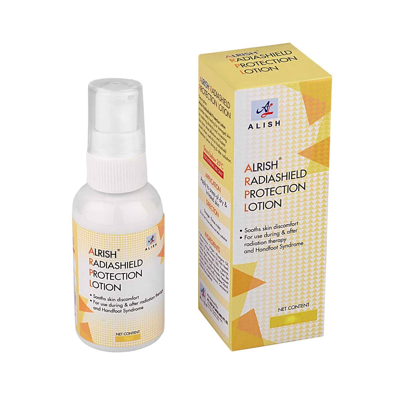 - Alrish Radiashield Protection Lotion: Assists In Relieving The Pain With The Added Benefits Of The Combination Of 22Natural Ingredients. Protection Against Discomfort , Irritation , High Pogmentation ,dryness, Itching , Swelling , Hand –FootSyndrome ,Etc